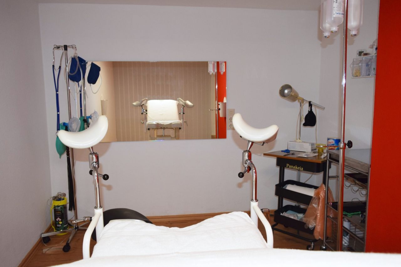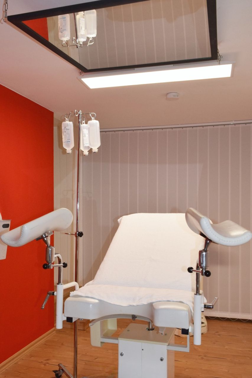 Im kühlen Untersuchungszimmer nebenan, mit Gynstuhl, Spiegeln an Decke und Wand, damit du alles sehen kannst und original OP und Arzt Instrumenten, wirst du die Realität schnell vergessen und deine Fetisch-Vorliebe ausleben können.