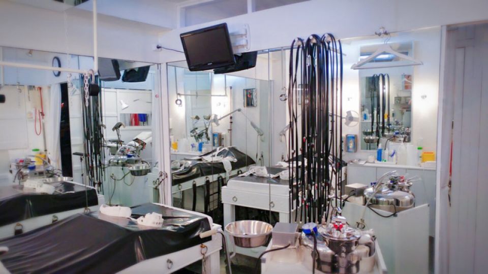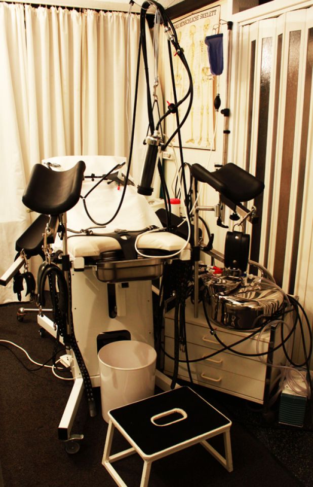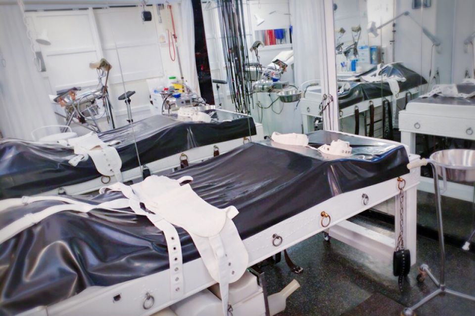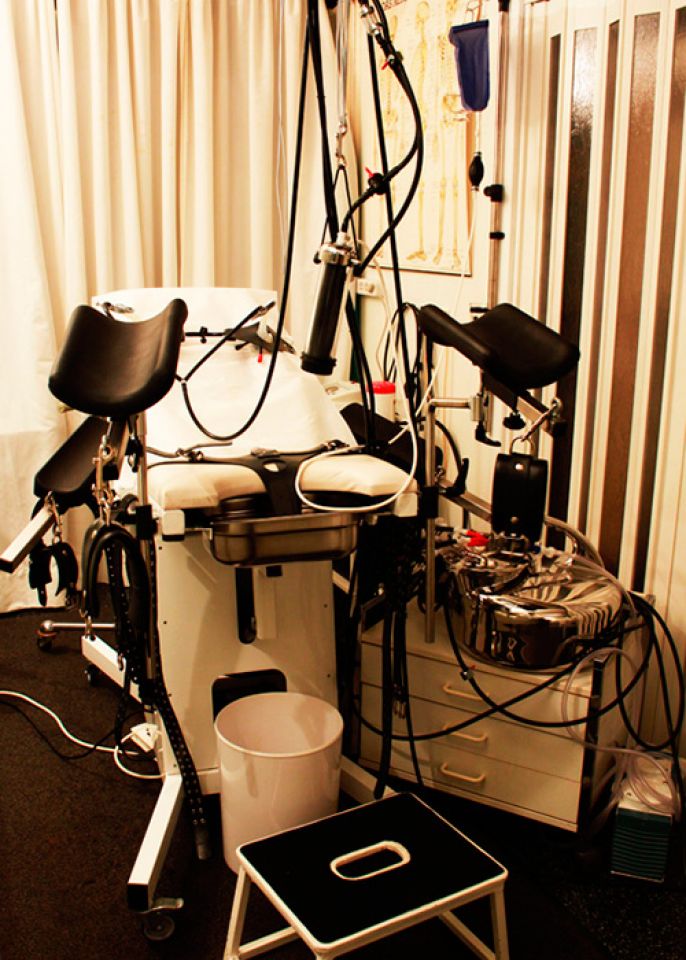 Ausgestattet mit zwei separaten Untersuchungsräumen, in denen Spezialstühle und Krankenbett vorhanden sind, lassen diesen Klinik Bereich zu einem perfekten Raum für Klinik und Latex-Patienten werden.